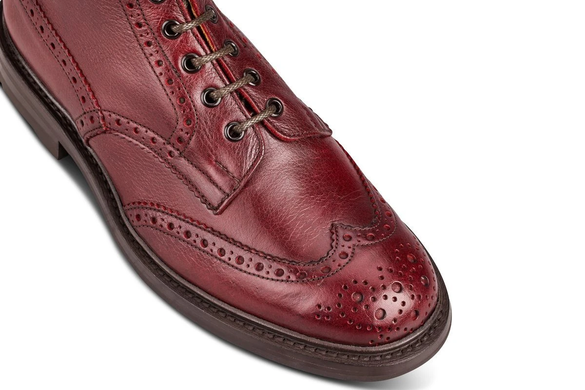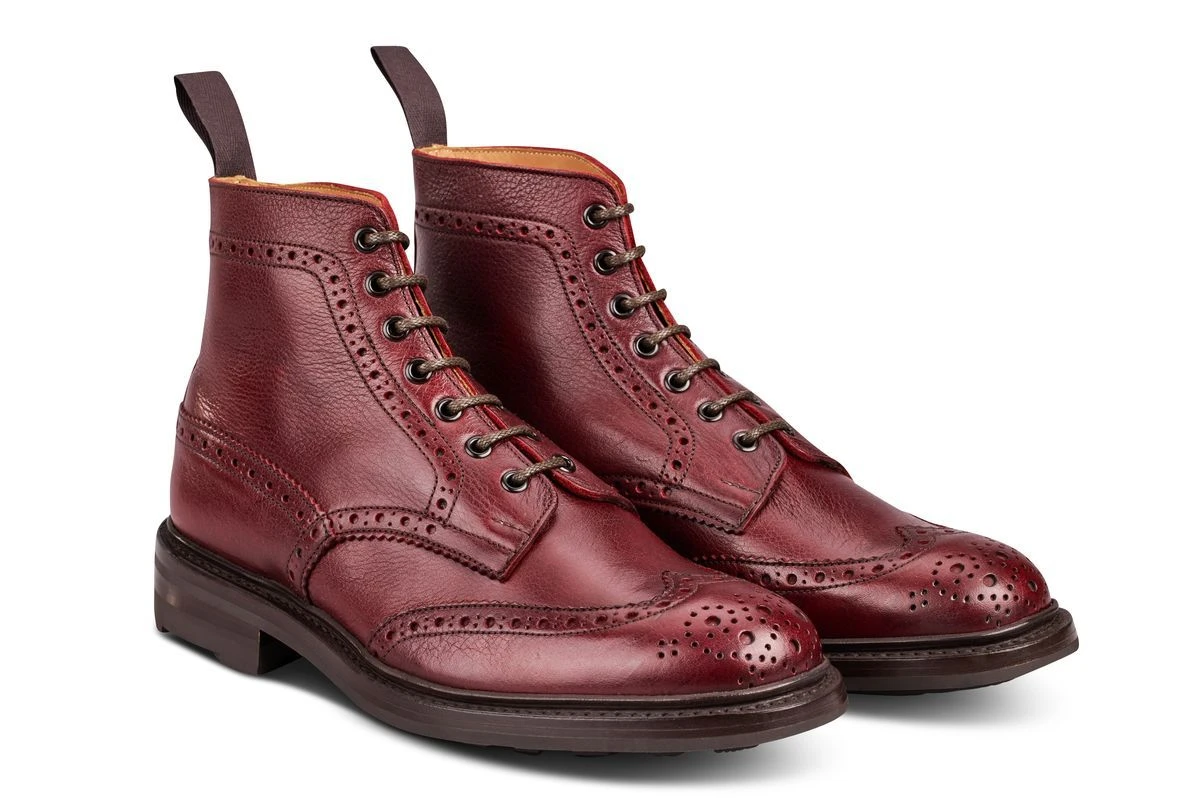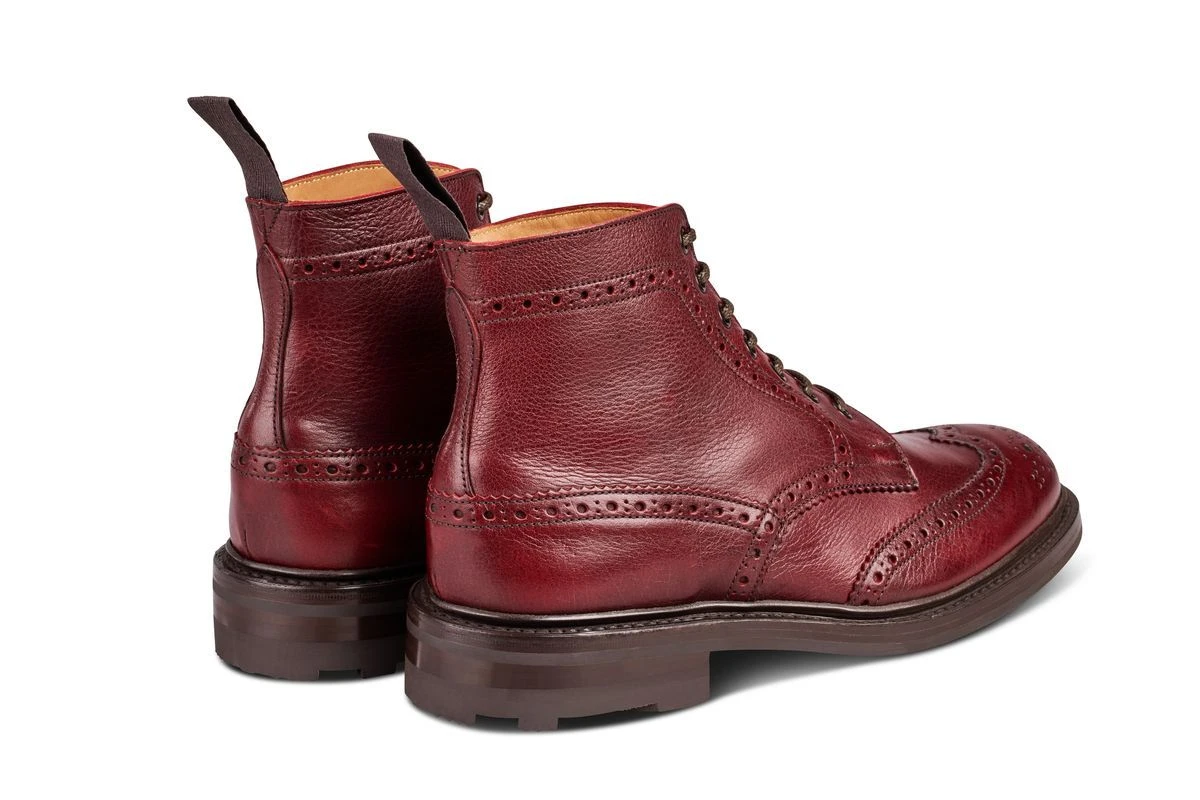Stow is Tricker’s most iconic men’s boot. Made originally as a country boot, but now worn by men all around the world across fields and cities. The Stow Derby ankle boot is instantly recognisable for its brogue patterning synonymous to Tricker’s; however its strong, solid build and seven eyelets make it as recognisable, whilst by no means flashy. A half bellows tongue is folded and attached to the boot to provide a watertight seal, with the storm welt providing an additional watertight seal between the shoe’s upper and sole. Of course, featuring leather linings.Â